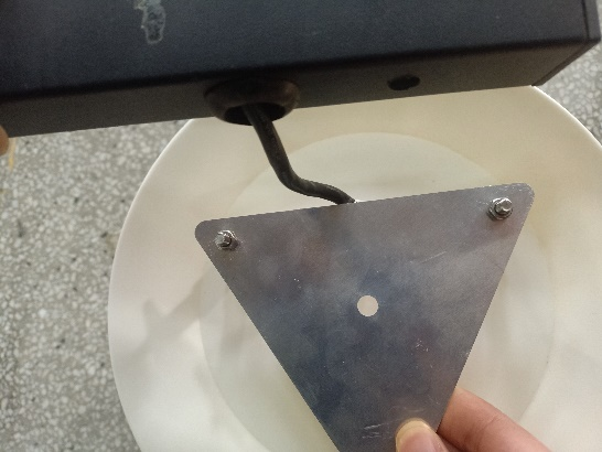 17、安裝固定百葉箱并穿線,將傳感器線從百葉箱進線孔(離燈桿底座1.5m、控制箱對面)穿入燈桿,從控制箱出線孔(離燈桿底座1.2m)穿出,然后固定支架并擰緊螺絲,注意百葉箱方向朝上